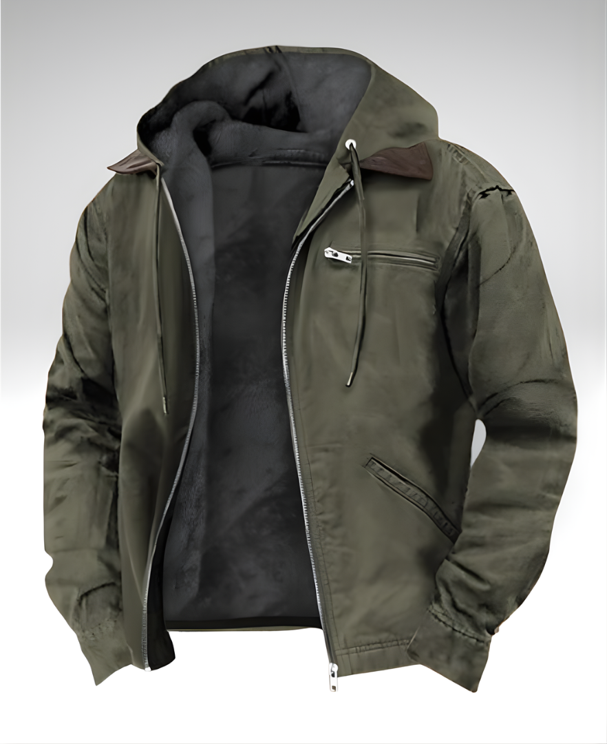 Capucha + cremallera para el clima cambiante, con bolsillos profundos y un acabado que mantiene su forma.