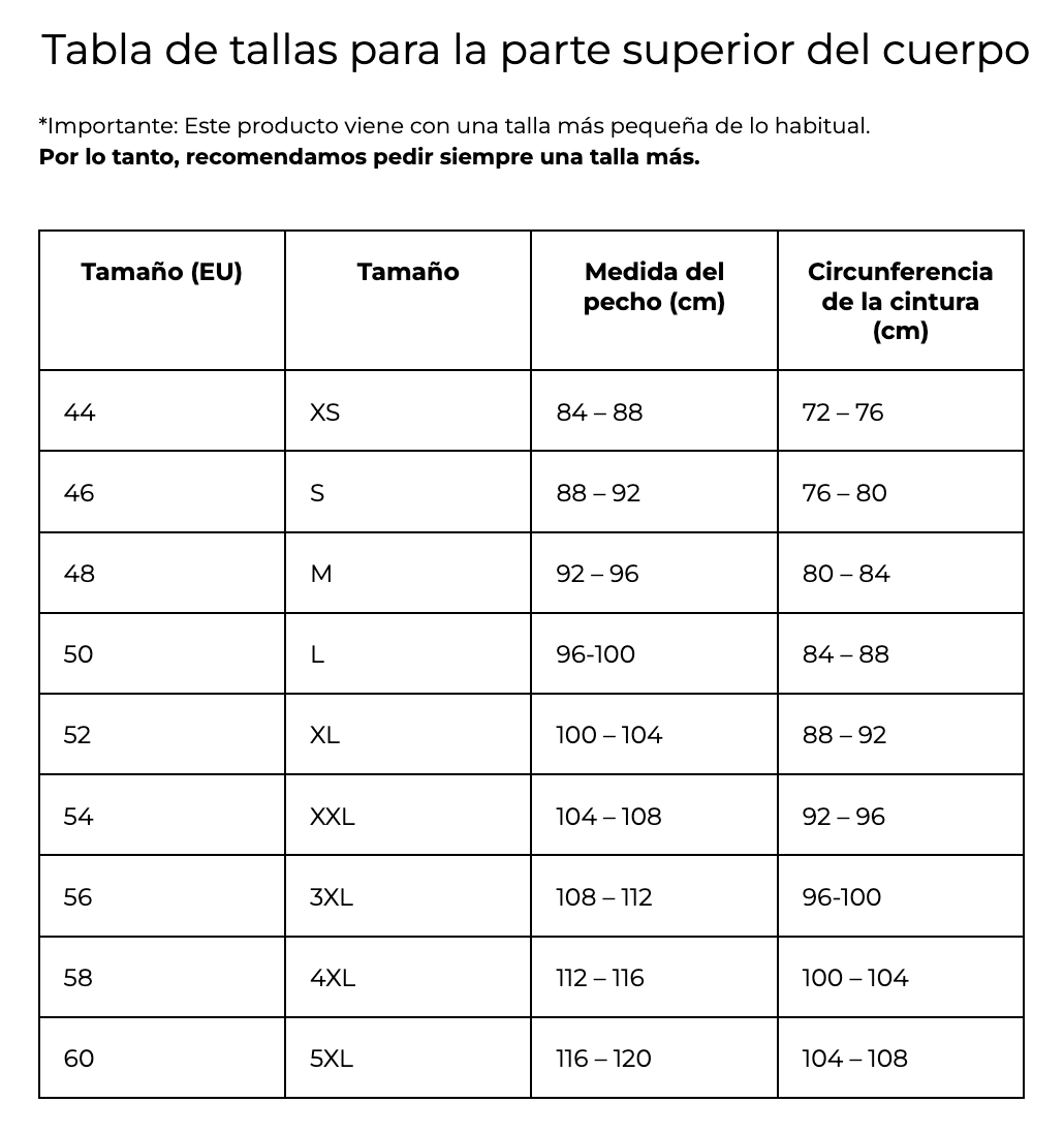 Las guías de tallas son precisas. Gracias por hacerlo fácil, mi pedido llego en 5 días.